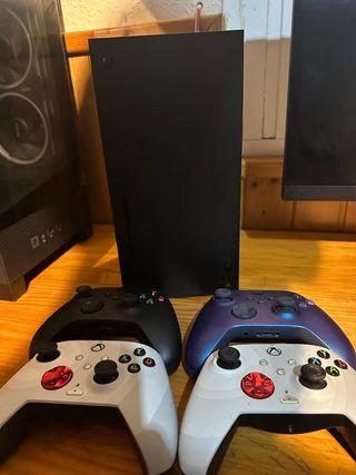 Console Xbox Series X da 1TB con un controller aggiuntivo rosso. Capacità di archiviazione di 1TB. Include un controller wireless Xbox rosso della Xbox One (quello fornito con la console si è rotto tempo fa). Include scatola e accessori in perfette condizioni. È possibile vendere la console da sola senza controller riducendo il prezzo totale di 20€. Possibilità di spedizione più economica al di fuori di Wallapop previo pagamento.