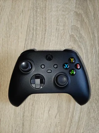 Controller per console Xbox Series S in colore nero. Design ergonomico. Pulsanti frontali con simboli colorati (A, B, X, Y). Stick analogici precisi. Croce direzionale. Pulsanti superiori e frontali. Porta di connessione. Potenziometro leggermente instabile, ma funziona bene.