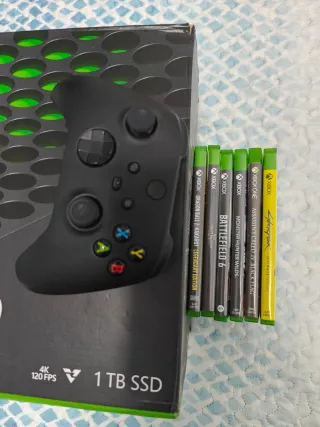 Vendo Xbox Series X con garanzia di 5 anni di CEX e fattura, acquistata lo scorso estate e non ho tempo per goderne. Consola + Mando: 400€. Espansione di memoria ufficiale da 1TB: 95€. Giochi: Cyberpunk 2077 Ultimate Edition: 45€, Monster Hunter Wilds: 35€, Battlefield 6: 40€, Space Marine 2: 40€.