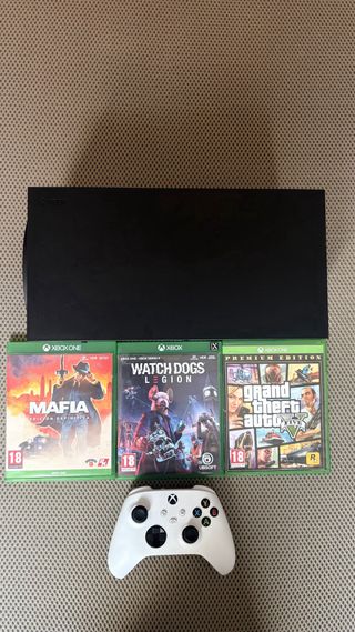 Consola Xbox Series X in perfette condizioni. Con scatola e tutti gli accessori originali. Il controller è il bianco originale con batteria ricaricabile tramite USB C. Si vende per non essere utilizzato. Capacità SSD da 1 TB. Include Grand Theft Auto 5, Watch Dogs Legion, Mafia Definitive Edition.
