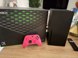 Xbox Series X con controller rosa in perfette condizioni, molto ben curata e senza graffi. Usata molto poco.