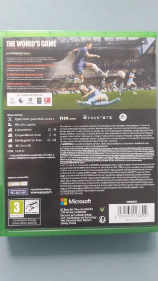 Videogioco FIFA 23 per Xbox Series X. - Include la tecnologia Hypermotion. - Con licenza ufficiale della FIFA. - Classificazione PEGI 3. Presenta un piccolo difetto nella chiusura della confezione che si chiude solo da un lato. Per il resto, perfetto. Da sapere che EA SPORTS ha smesso di utilizzare i propri server per il multiplayer di questo gioco. Ascolto offerte!!!