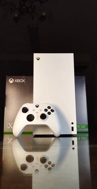 Console Xbox Series X in colore nero. Design verticale e compatto. Finitura opaca. Include 2 controller e la sua confezione originale. Utilizzata molto poco. Il controller bianco funziona perfettamente. Il controller nero presenta qualche problema minimo.