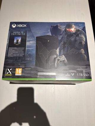 Console Xbox Series X edizione speciale Halo. Design esclusivo in nero e oro. Include controller personalizzato. Gioco Halo Infinite. Include caricatore per controller. Design fuori produzione. Stato incredibile, come nuovo. Per collezionisti. Riedizione. Poco uso. Si vende per mancanza di tempo per utilizzarla. Include scatola e tutti gli accessori dell'edizione.