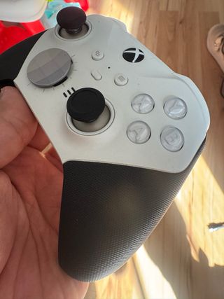 Controller wireless Xbox Elite Series 2 Core in bianco. Design ergonomico. Sticks analogici ad alta precisione. Pulsanti RB/LB funzionano perfettamente. Joystick NUOVI (senza drift). Piccola crepa nella parte superiore (ultima foto). Senza accessori, senza scatola, senza cavo. Solo ciò che vedi nelle foto. Spedizioni disponibili.