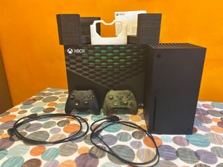 Console Xbox Series X con 1TB di memoria. - Console di colore nero. - 2 joystick - Controller aggiuntivo di colore verde. - Cavi inclusi.