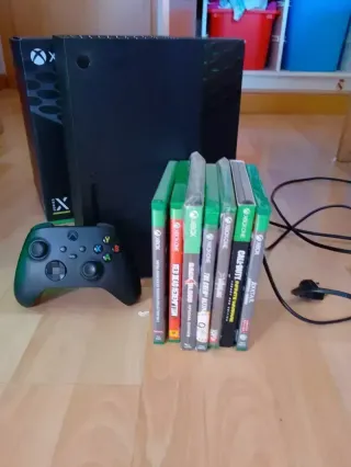 Pacchetto Console Xbox Series X in colore nero, con due controller, diciassette giochi e cuffie wireless. Capacità SSD da 1 TB. Supporto per 4K e 120 FPS. Cuffie originali XBOX. La spugna è usurata, ma può essere sostituita. Il controller blu ha i joystick un po' usurati dall'uso, ma funziona perfettamente e può essere dotato di un proteggi joystick. Il controller nero è impeccabile, quasi nuovo. La console è impeccabile, ben curata e senza polvere accumulata. La vendo per mancato utilizzo, avevo intenzione di tenerla come ricordo, ma preferisco il denaro piuttosto che tenerla completamente ferma 😅