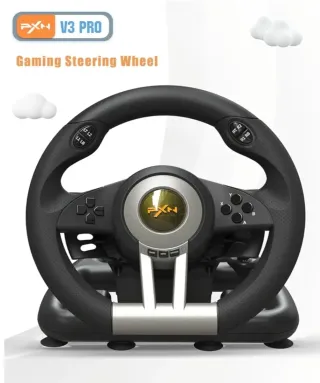 Volante da corsa PXN V3 Pro progettato per un'esperienza di guida immersiva. Compatibile con PC, PS3, PS4, Xbox One, Xbox Series X/S e Nintendo Switch. Angolo di rotazione di 180 gradi. Feedback di vibrazione.