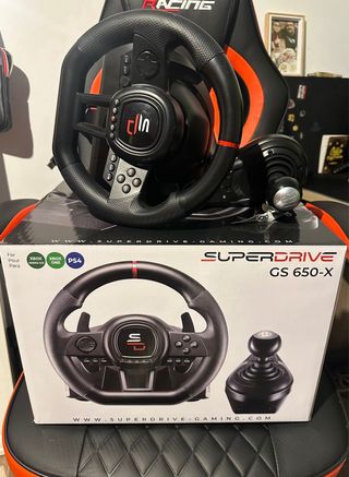 Volante da corsa SuperDrive GS 650-X. Compatibile con PS4, Xbox One e Xbox Series X/S. Include leva del cambio. Nuovo nella sua confezione, usato solo una volta.