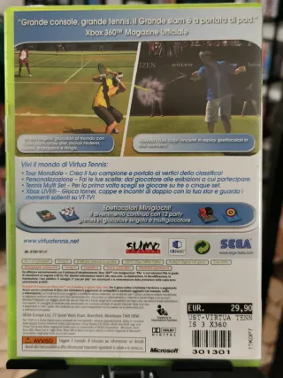 Videogioco Virtua Tennis 3 per Xbox 360. - Gioco sportivo. - Copertina in italiano.
