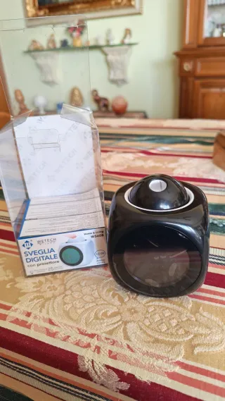 Sveglia digitale WETECH con funzione proiettore. Il design cubico la rende un oggetto moderno e funzionale. - Display digitale. - Proiezione dell'ora sul soffitto o parete. - Funzione sveglia. - Rilevamento temperatura. - Funziona sia con pile AAA che con cavetto, entrambi non inclusi.