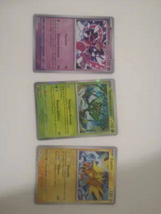 Lotto di 55 carte Pokémon del set espansione crepuscolo mascherato in lingua italiana. Le carte non presentano segni di usura o gravi danni, sono ottime per completare la collezione e sono composte da carte Holo e Reverse Holo. Per altre info scrivetemi pure.