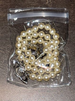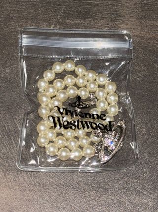 Collana Vivienne Westwood con perle e ciondolo Saturno Nana. - Ciondolo Saturno Nana tempestato di cristalli. - Perle bianche lucide.