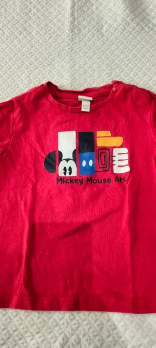 Maglietta rossa per neonato con stampa Mickey Mouse Art. - Stampa colorata di Mickey Mouse. - Maniche corte. - Scollo rotondo.