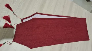 Elegante runner da tavolo di colore rosso lungo 180 cm, perfetto per aggiungere un tocco di stile alla tua tavola. La sua lunghezza lo rende ideale per tavoli da pranzo. - Lunghezza: 180 cm - Dettagli con nappine alle estremità