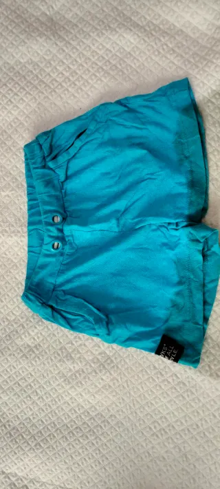 Pantaloncini comodi per neonato in un vivace colore blu. - Vita elasticizzata. - Dettaglio con bottoni. - Tasche laterali.