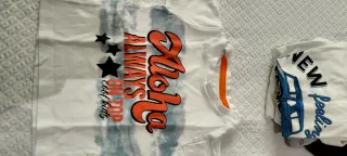 Maglietta a maniche corte per neonato con stampa Aloha e Always on top cool kids. - Fantasia con stelle e strisce colorate. - Colletto con bordino arancione. - Stampa New feeling su un'altra maglietta inclusa.