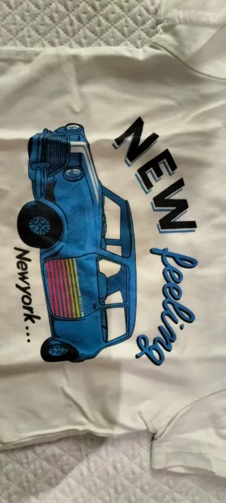 Maglietta bianca per neonato con stampa New feeling e un'auto blu. - Stampa New feeling con auto blu e scritta Newyork... - Etichetta babyone sul colletto - Chiusura con bottoni sul colletto