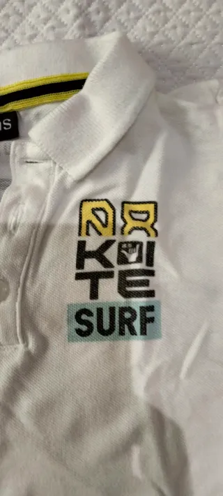 Maglietta a maniche lunghe per neonato, colore bianco. - Collo polo con bottoni. - Stampa SKATE SURF sul petto. - Logo Brums sul colletto.
