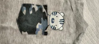 Maglietta a manica lunga per neonato, colore grigio melange. - Fantasia con zampe di gatto blu sulle maniche. - Applicazione di un gatto con taschino camouflage sul davanti. - Chiusura con bottoncini sul collo.