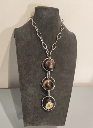 Elegante collana Dafne in argento 925 con pendente centrale composto da tre sfere di agata alternate a cerchi in argento. - Argento 925 - Agata naturale - Design moderno e raffinato Vintage a grandi maglie in argento 925 e agata.