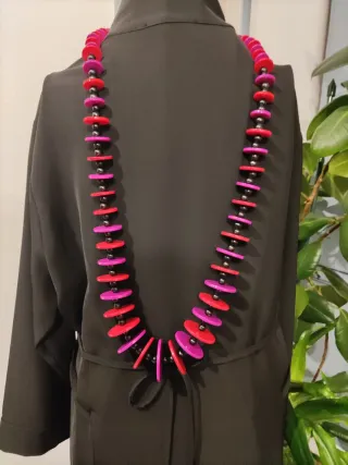 Collana Max Mara Weekend con perline colorate. - Perline rosse e viola. - Chiusura a moschettone con dettaglio a farfalla.