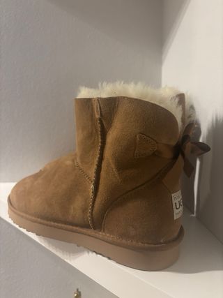 Stivaletti UGG da donna in morbida pelle scamosciata. - Dettaglio fiocco sul retro. - Fodera interna in calda lana. - Etichetta con logo sul tallone.