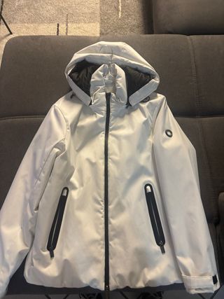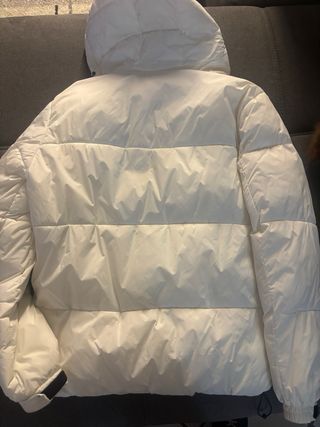 Bellissimo piumino bianco, perfetto per le giornate più fredde. Un capo versatile e alla moda. - Chiusura con zip. - Tasche laterali con zip. - Cappuccio integrato. - Polsini elasticizzati.