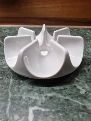 Elegante portacandela in porcellana bianca del marchio Arzberg, ideato anche come scalda teiera Un pezzo dal design moderno e raffinato, firmato Hans Wilhelm Seitz. - Materiale: porcellana. - Colore: bianco. - Marca: Arzberg.