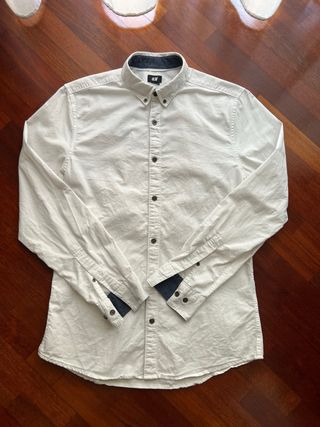 Camicia da uomo H&M in cotone, dal taglio slim fit. - Colletto con bottoncini. - Polsini con doppio bottone e dettaglio interno in contrasto.