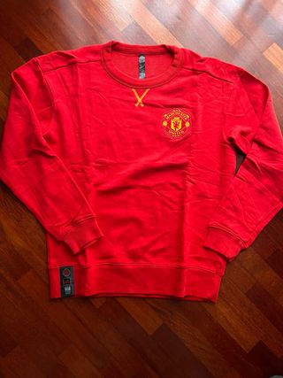 Felpa girocollo rossa del Manchester United, firmata Adidas. Presenta lo stemma del club ricamato sul petto. - Colore: Rosso - Taglia: S - Logo Manchester United ricamato - Design girocollo