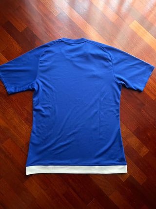 Maglietta sportiva Adidas blu con tecnologia climacool. - Logo Adidas sul petto. - Inserti in mesh sulle maniche. - Design a V.