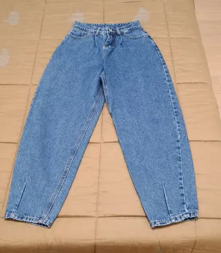 Jeans modello Baggy da donna. Indossato una volta. Sbagliato la taglia - Vita alta. - Gamba ampia. - Tasche. - Chiusura con zip e bottone.