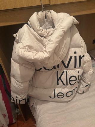Piumino Calvin Klein con logo a contrasto. - Design imbottito. - Chiusura con zip frontale. - Logo stampato su tutta la superficie.