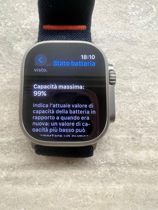 Orologio Apple Watch Ultra con cinturino blu navy e cassa in argento. - Cinturino in tessuto resistente. - Design sportivo ed elegante.