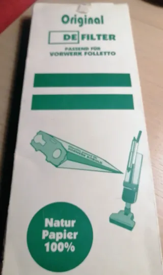 Vendo in confezione originale vintage n°4 sacchetti in Carta Naturale per Vorwerk Folletto - Adatti per : VK 118,119,120,121 E 122. Compresi anche due cartucce di profumazione per i sacchetti originali Vorwerk com Cartolina di Presentazione .