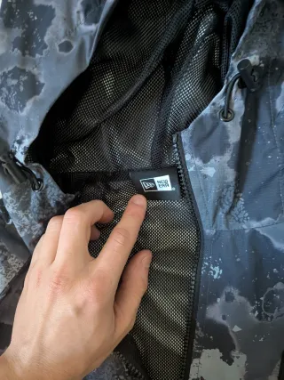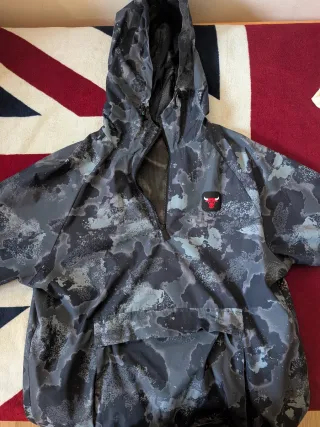 Giacca a vento con un design camouflage nei toni del nero e del grigio, con il logo dei Chicago Bulls. - Logo Chicago Bulls ricamato sul petto. - Cappuccio con coulisse. - Tasca a marsupio. - Zip frontale parziale.