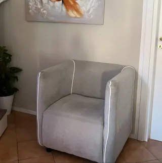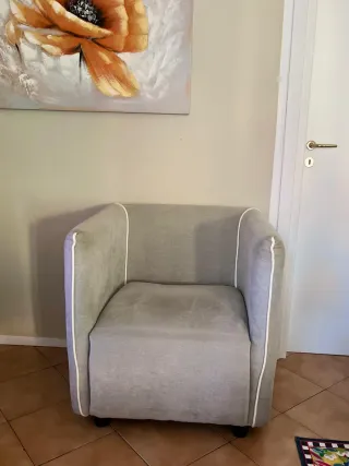 Vendo poltrona comoda e ben tenuta. Tessuto integro, nessun segno di usura, ideale per salotto. Design semplice e versatile, pronta all’uso. Prezzo trattabile-solo per davvero interessari