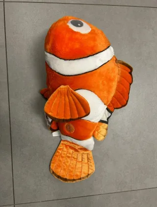 Morbido peluche di Nemo, il simpatico pesciolino pagliaccio Disney. Perfetto per i fan della saga. Molto morbido e tenuto bene - Personaggio: Nemo - Dimensioni: 45 cm - Materiale: Peluche