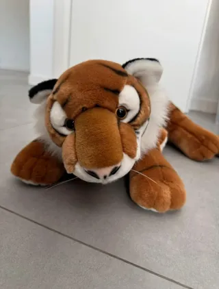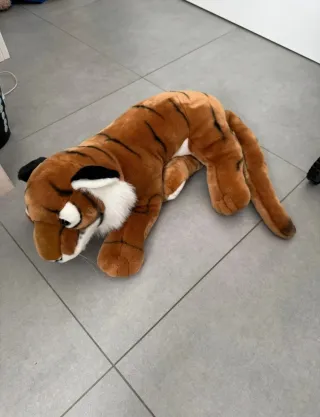Morbido peluche a forma di tigre, lungo circa 50 cm. Perfetto per arredare una cameretta o come compagno di giochi. morbido e tenuto benissimo - Materiale morbido e sicuro. - Dettagli curati.