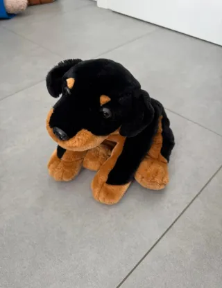 Pupazzo cane rottweiler tenuto benissimo, molto morbido, 30cm circa - Colore nero e marrone. - Materiale morbido e soffice.