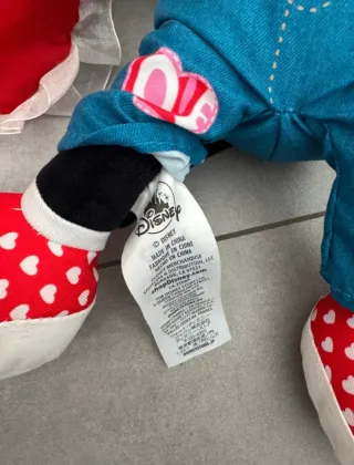 Pupazzo peluche Disney di Topolino Mickey mouse innamorato a san Valentino originale, ha papillon rosa e cuore con finiture in pizzo in mano. Da collezione vintage. Ben 38 cm di altezza