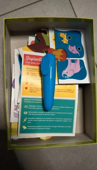Gioco educativo Sapientino La Penna Interattiva dedicato ai cuccioli. Ideale per i più piccoli. Completo e in ottime condizioni - Include penna interattiva. - Carte con immagini di animali. - Età consigliata: 2-3 anni. - Made in Italy.