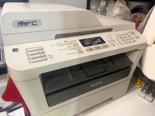 Stampante multifunzione Brother, ideale per casa o ufficio. Unisce le funzioni di stampa, scansione e fax. - Colore beige e grigio. - Modello MFC-7360N.
