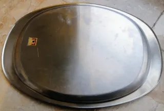 Vendo vassoio ovale integro e senza bozzi usatoa in ottime condizioni , qualche lieve segno di usura marca Alfra Acciaio Inox 18 8. Capiente e resistente con una bella lucidata farete un figurone . larghezza 46cm , altezza 32.