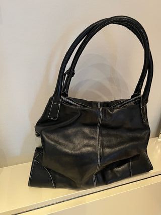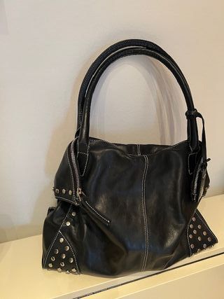 Elegante borsa da donna in pelle, un accessorio che aggiunge un tocco di stile. Al lato della borsa due bottoni magnetici che si fermano le parti laterali della borsa una volta chiusa con la cerniera, all'interno due tasche con ceniera - Dettagli con borchie metalliche. - Cuciture a contrasto. - Manici arrotondati.