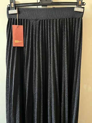 Gonna nera con pieghe eleganti. (nuova mai indossata) - Tessuto scintillante. - Vita elasticizzata.