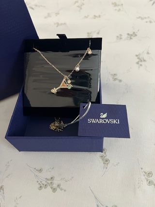Deliziosa collana Swarovski con ciondolo a forma di bicchiere da cocktail. Un accessorio scintillante e divertente. - Ciondolo decorato con cristalli. - Catena sottile color oro. - Dettagli verdi e perle.