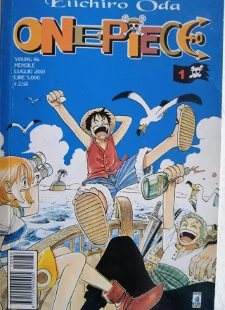 Vendo One Piece N°1 Originale edizione blu . Il primissimo volume originale edizione Italiana dell'opera di Eiichiro Oda che ci trasporta in un fantastico mondo di Pirati fra mille Avventure con Monkey D. Rufy .