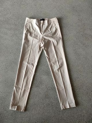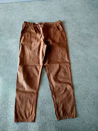 Pantaloni cargo in tessuto di colore beige, usati poco e in buono stato. Sono comodi e perfetti per un look casual. - Modello cargo con tasche laterali. - Chiusura con coulisse in vita. - Tessuto resistente e di buona qualità. - Perfetti per la primavera/autunno.